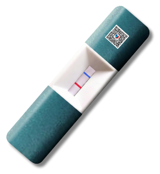 Wait 3-5 minutes. A blue line in the control area confirms the test is valid. A red line in the test area indicates pregnancy. No guessing required.
